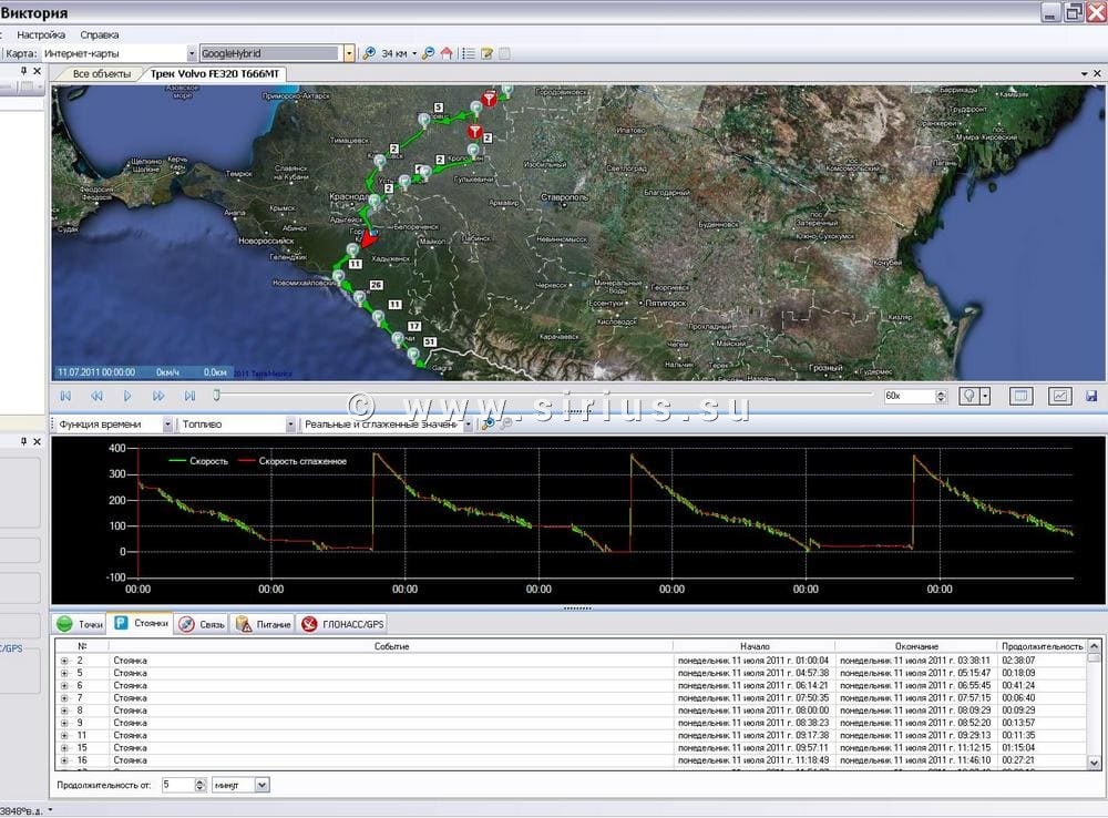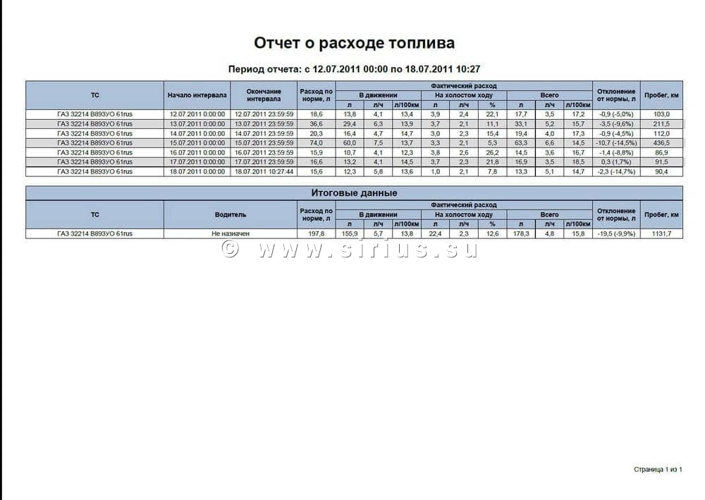 Результат работы и того и другого способа в программе "Сириус Навигатор" отображаются одинаково в отчете "Расход топлива":